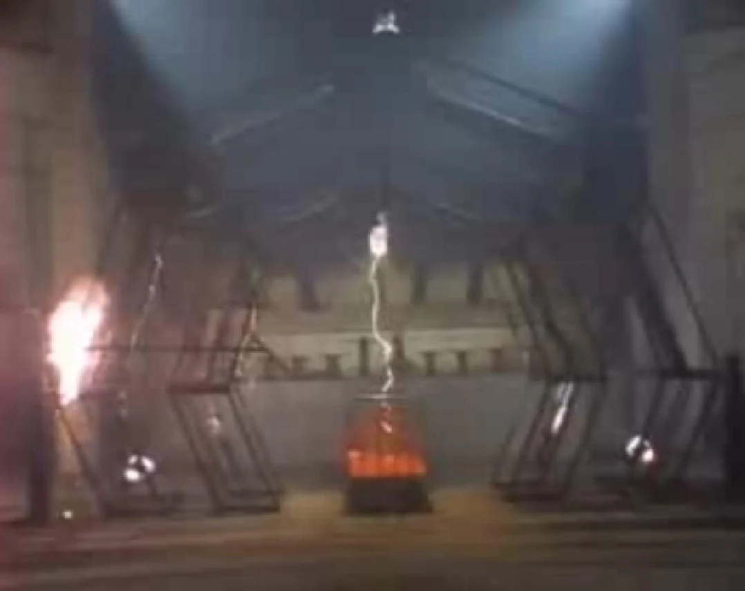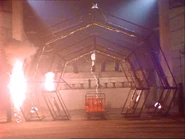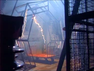 The steel scaffolding is live and unprotected - a fact which Paul exploits in episode 11: when Ashka faces him in her power suit, he throws a steel pole into the scaffolding, causing a short and massive disruptions to the entire power grid. Ashka with her power suit are magnetically drawn and attached to the scaffolding, which further disrupts power flow within the device, causing visible signs of trouble and making everyone run from the castle.